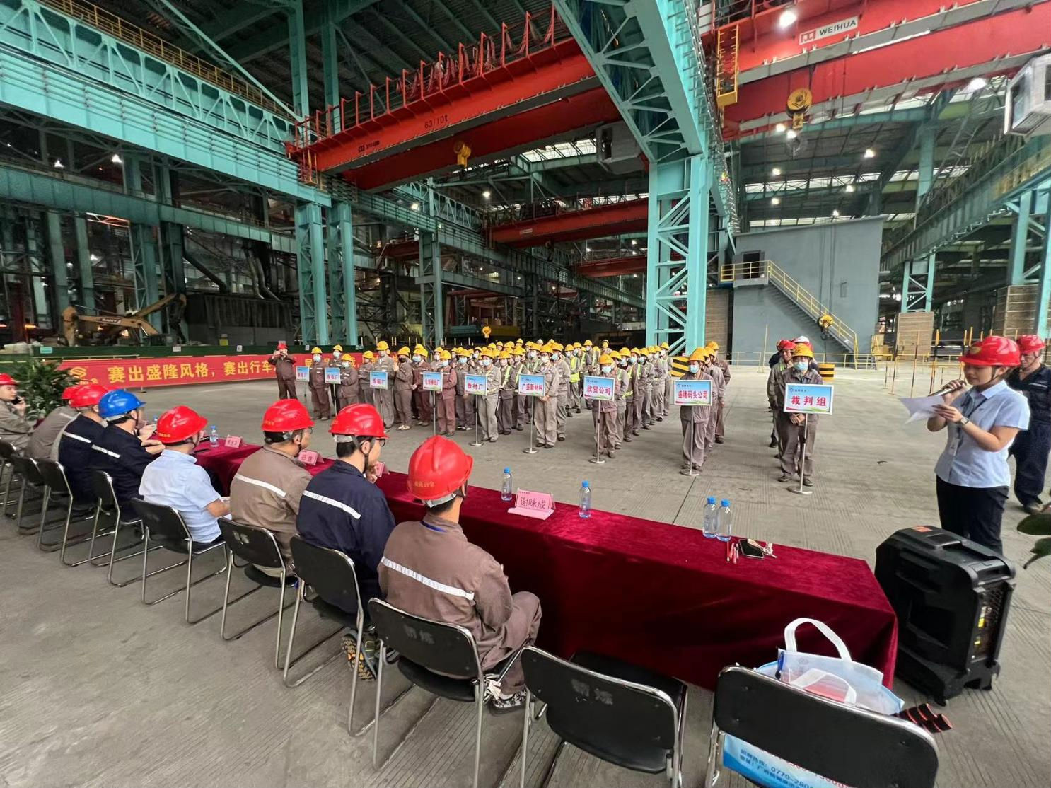 4月24日上午,“盛隆工匠杯”第三届行车技能大比武在炼钢厂隆重举行。出席开幕式的各位领导有公司设备副总李忠平、公司工会副主席兼炼铁厂人事副厂长柯武庆、人力资源部部长郑锦、烧结厂人事副厂长沈巍、炼钢厂人事副厂长郑风辉、轧钢棒线厂人事副厂长邹玉庭、板材厂人事副厂长刘秀建、广盛公司副总经理王航辉、欣贸公司经理助理柯辉、码头公司经理助理林新。
